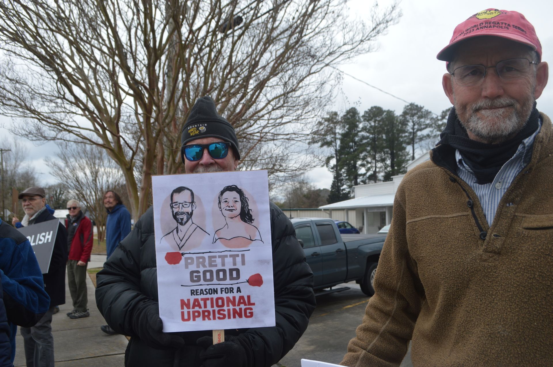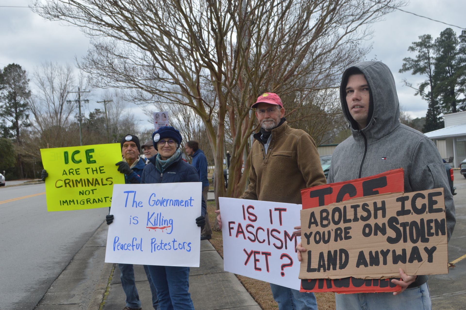 A group of Pamlico residents gathered outside the Oriental Post Office on Monday afternoon to protest the shooting death of 37-year-old Alex Pretti by ICE agents Saturday in Minneapolis.