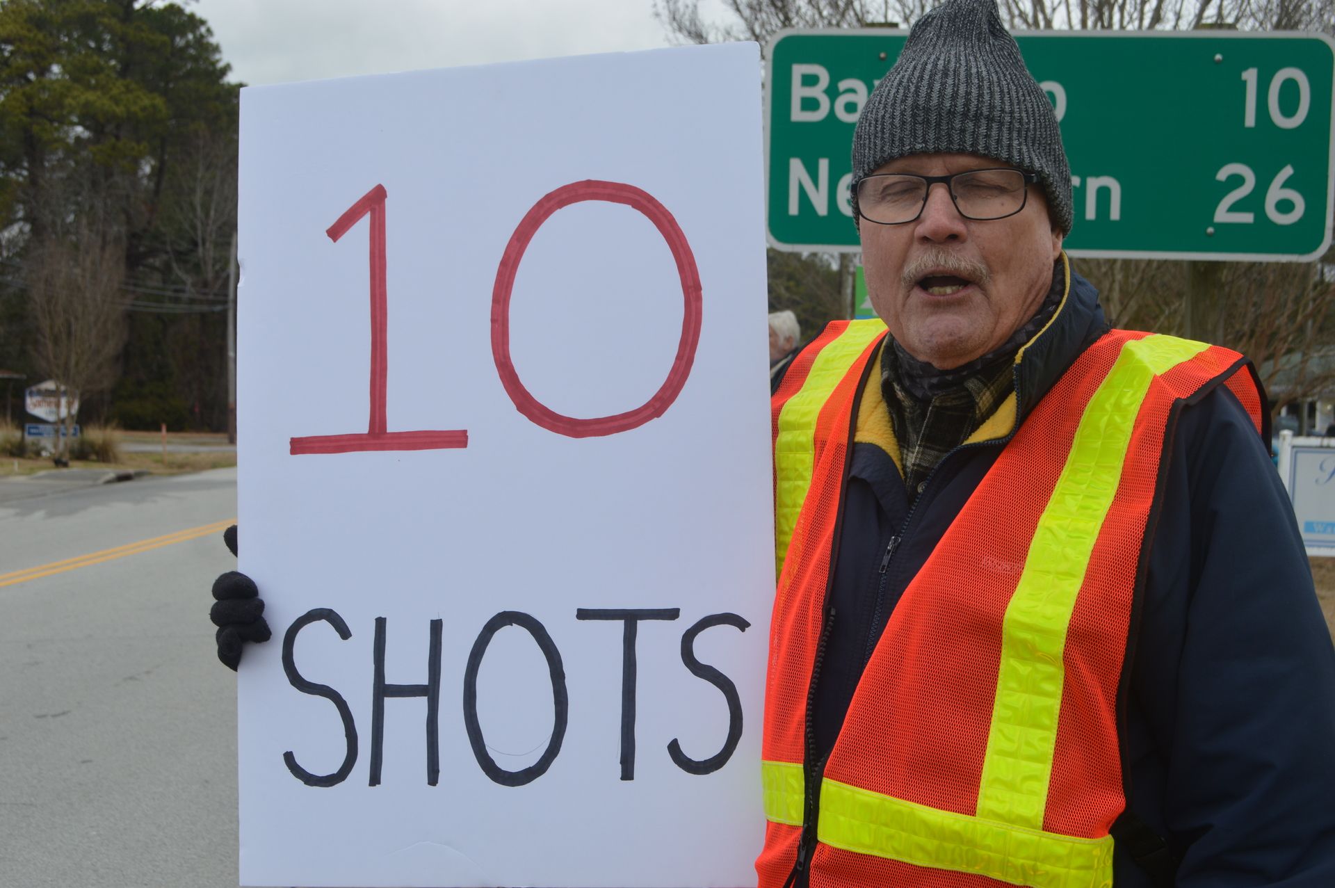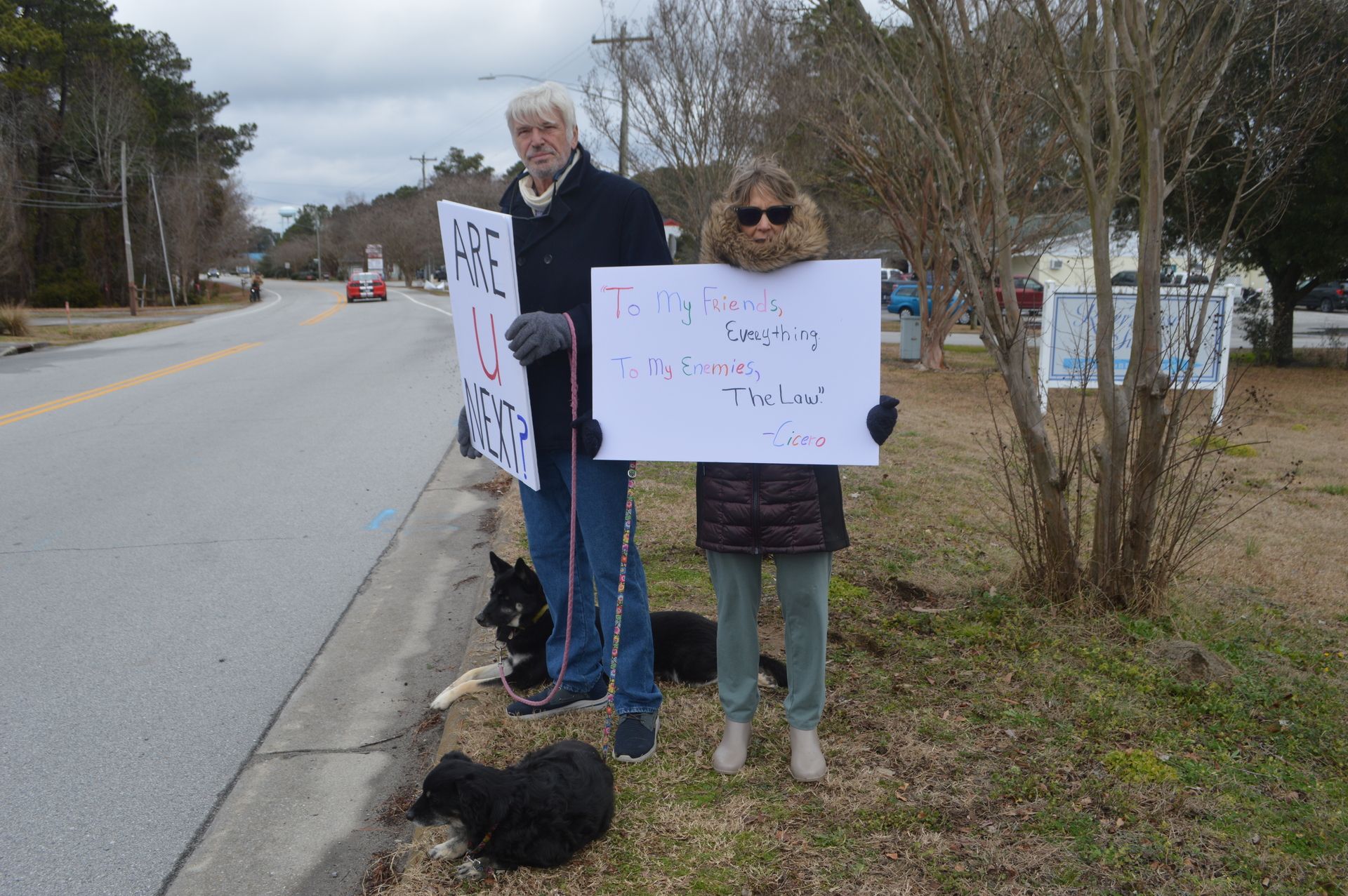 About 15 Pamlico protesters showed up with handwritten signs. Organizer Bruce Perkins said a handful of people stopped to object to the protest.